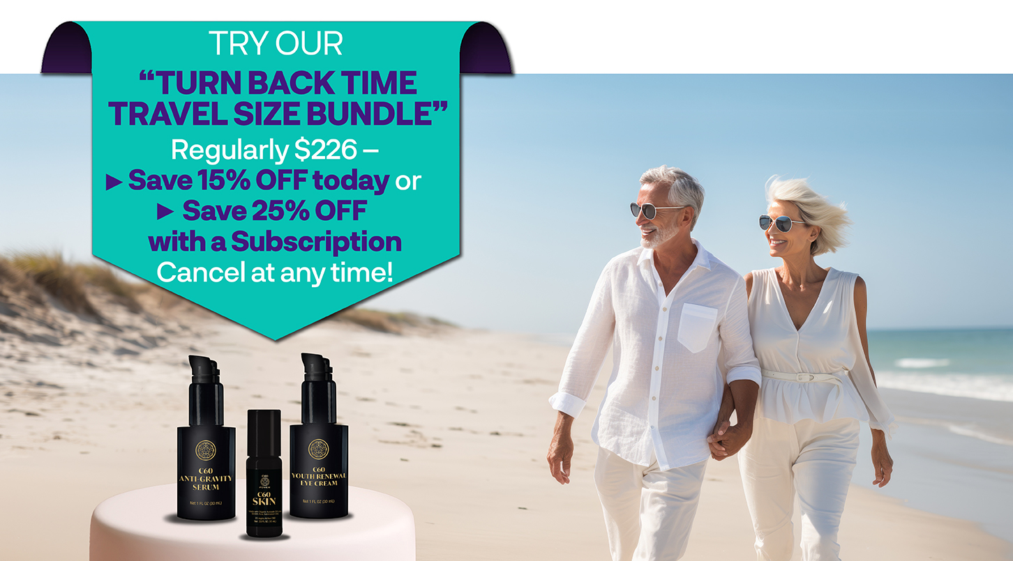 I’ve put together something I call the “Turn Back Time Travel Size” Bundle – and it includes three of our products that work together to literally bring your skin back to life… It’s like the Tiffany & Company brand of C60 Anti-Aging products… It’s the best of the best!